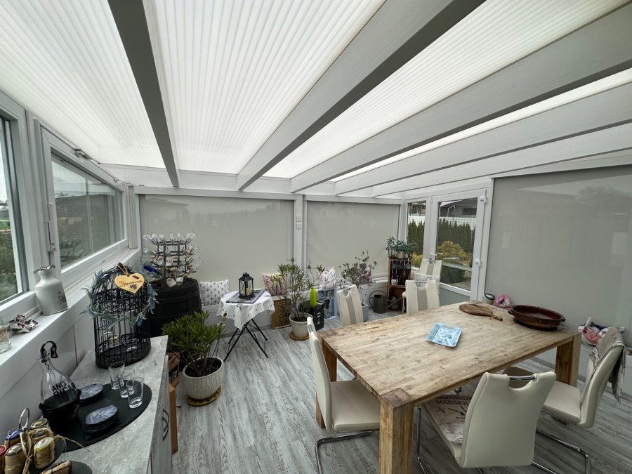 Er bietet 2 Schlafzimmer, ein großzügiges Wohn und Esszimmer und eine geräumige Küche mit direktem Zugang zum Wintergarten, zur Terrasse sowie dem pflegeleichten Außenbereich. Eine Garage und ein zusätzlicher Stellplatz sorgen für komfortables Parken. Ideal für Paare, kleine Familien oder alle, die barrierearmes Wohnen schätzen.