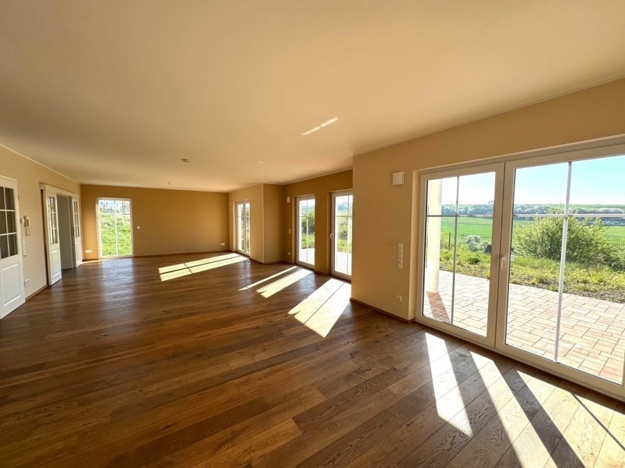 -Großer heller Wohn-Essbereich mit Ausgang zur großzügigen Terrasse und in den Garten mit Fernsicht